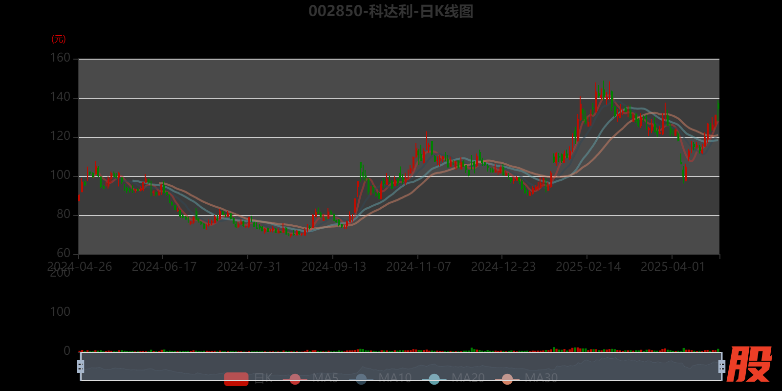 以4月25日收盘价计算,科达利目前市盈率(TTM)约为23.72倍,市净率(LF)约2.99倍,市销率(TTM)约2.93倍。