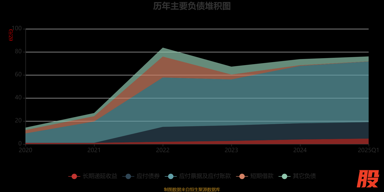 负债重大变化方面,截至2025年一季度末,公司一年内到期的非流动负债较上年末减少49.23%,占公司总资产比重下降0.4个百分点;长期递延收益较上年末增加19.56%,占公司总资产比重上升0.29个百分点;应付债券较上年末增加1.07%,占公司总资产比重下降0.26个百分点;应付票据及应付账款较上年末增加5.7%,占公司总资产比重上升0.24个百分点。